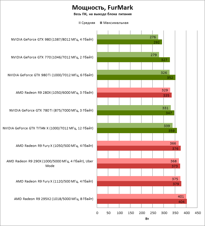В общих чертах повторилась ситуация противостояния GeForce GTX 780 Ti и Radeon R9 290X. Разница в том, что NVIDIA на этот раз заранее сделала агрессивный ход, выпустив практически полный аналог GTX TITAN X в лице GTX 980 Ti по более низкой цене, чем GTX 780 Ti в свое время. Fury X оценен в такую же сумму — $649, однако не достиг абсолютного паритета с GTX 980 Ti по производительности в 3D. Разница архитектур ответственна за плохо предсказуемые колебания результатов между отдельными играми — намного более широкие, чем при сравнении Radeon R9 290X и GTX 780 Ti либо Radeon HD 7970 и GTX 680 ранее. Все это ставит Radeon R9 Fury X в весьма неустойчивое положение.