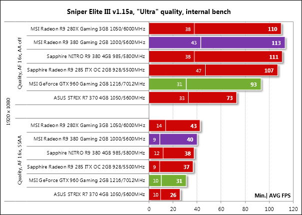 Вот и для Sniper Elite III покупка Radeon R9 380 с четырьмя гигабайтами памяти не выглядит оправданной.