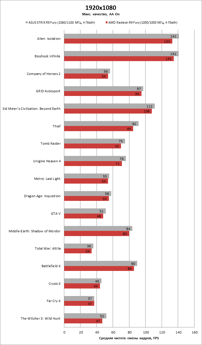Полноэкранное сглаживание AMD Radeon R9 Fury (1000/1000 МГц, 4 Гбайт) ASUS STRIX R9 Fury (1060/1100 МГц, 4 Гбайт)