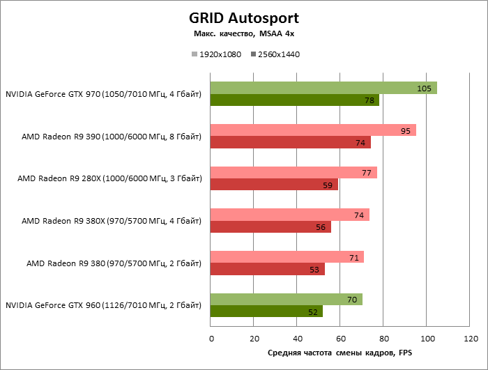 GeForce GTX 970 и Radeon R9 390 выглядят уже как два игрока из другой лиги – оба также не испытывают недостатка в объеме RAM, но в дополнение к этому крупные графические процессоры обеспечивают на 30-40 % более высокую частоту смены кадров по сравнению с тем, на что способен Radeon R9 380X.