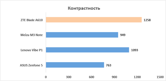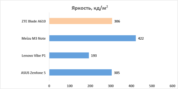⇡#Внешний вид и эргономичностьПожалуй, самая примечательная вещь в экстерьере ZTE Blade A610 – это выпуклое защитное стекло на лицевой панели, изгибающееся к граням корпуса. Это визуально придает смартфону шарма – он смотрится дороже, чем есть на самом деле. Разумеется, стекло устойчиво к царапинам – его можно носить в одном кармане с монетами и ключами. Олеофобное покрытие и поляризационный фильтр также на месте. С ZTE Blade A610 комфортно работать одной рукой – перекладывать его в ладони не придется. Дисплей у него пятидюймовый и занимает чуть менее 80% площади лицевой панели, рамки здесь практически отсутствуют. Под дисплеем находятся три сенсорные клавиши навигации: «Назад», «Домой» и «Меню открытых приложений». При необходимости назначение клавиш можно изменить в настройках – одна из особенностей фирменной оболочки MiFavor UI. Несмотря на наличие очень емкой батарейки, инженеры ZTE смогли сделать корпус Blade A610 относительно тонким – 8,6 миллиметра. Визуально устройство воспринимается более тонким за счет закруглений задней панели. Клавиши и разъемы здесь расположены там же, где и у подавляющего большинства Android-смартфонов. Привыкнуть к ZTE Blade A610 легко. Клавиши включения и управления громкостью справа, интерфейс для подключения наушников – на верхней грани, а разъем micro-USB – на нижней. Слева находится общее гнездо для установки двух карточек формата nano-SIM или симки и microSD. Корпус смартфона выполнен из довольно жесткого шероховатого пластика. Он не скрипит и не люфтит – ребер жесткости в конструкции достаточно. Задняя панель приятная на ощупь, устройство не скользит в ладони. На спинке гаджета находится прорезь внешнего, довольно громкого динамика, объектив основной 13-мп камеры и светодиодная вспышка. Корпус у ZTE Blade A610 неразборный. ⇡#ДисплейРазрешение пятидюймового дисплея ZTE Blade A610 – 720 × 1280 точек. Плотность пикселей приемлемая для недорого Android-смартфона – 293,7 точки на дюйм. В обычных условиях эффект пикселизации заметен не будет, отдельные точки заметны, только если поднести аппарат прямо к глазам. Для кино и фотографий разрешения более чем достаточно, читать электронные документы на дисплее Blade A610 вполне комфортно – все шрифты, и мелкие в том числе, выглядят резко. Дисплей здесь выполнен по технологии IPS, причем матрица для «бюджетника» весьма неплохая, с достаточно широкими углами обзора. Традиционное для данного типа матриц падение контрастности при отведении взгляда от перпендикуляра здесь выражено вполне умеренно – на смартфоне вполне можно что-то смотреть вдвоем. Устройство поддерживает до пяти одновременных прикосновений, чего вполне достаточно для комфортной работы с ним. На касания сенсорная поверхность реагирует быстро и вполне точно, без проблем определяет мультисенсорные жесты, а вот работать с ней в перчатках не получится. ![]() Границы подсветки у экрана Blade A610 довольно широкие: минимальная светимость белого поля – 14 кд/м2, максимальная – 306 кд/м2. Такие значения позволяют пользоваться аппаратом как в кромешной темноте, так и под прямыми солнечными лучами – антибликовая защита работает успешно. Нехватка яркости ощущается, но ничего страшного для повседневного пользования смартфоном. На борту Blade A610 имеется датчик освещенности, за счет которого устройство умеет устанавливать комфортный уровень яркости и делает это в