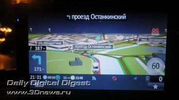 Мы даём две фотографии — с экрана навигатора и через лобовое стекло, дабы подтвердить наблюдения того вечера. Извините за качество съёмки, это делалось примитивной «мыльницей», навскидку.