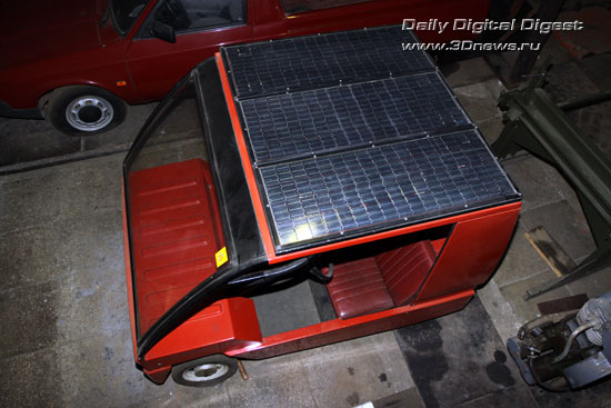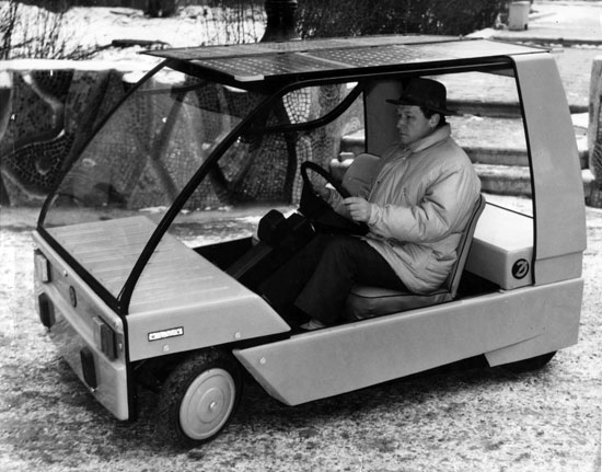 Насколько оказалась эффективной концепция подзаряда от солнечной батареи? При хорошем солнце элементы давали ток до 8 ампер, что, конечно, мало для движения, но нормально для подзаряда. Однако заряжалась-то машина по ночам, а днем энергию как раз расходовала! И тут уже восьми ампер (это в лучшем случае) для положительного энергобаланса не хватало. Фактически, солнечная батарея давала не более 10% от необходимого электричества. Но ее и не планировали использовать в серийных вариантах таких миниэлектромобилей - солнечные элементы дороги, это была просто проверка возможности их применения.