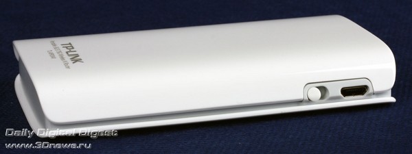 На боковой стенке имеется разъём micro-USB для подключения внешнего источника питания, будь то зарядное устройство, ноутбук или даже планшет. Там же находится кнопка включения, а вот переключатель режима работы исчез, как и отдельная кнопка для запуска WPS.