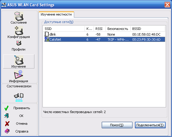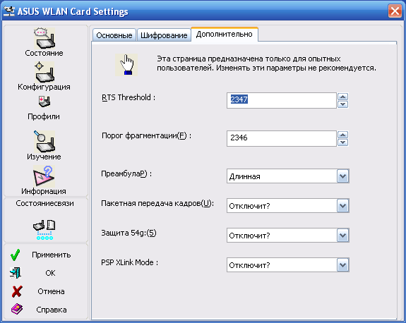 Интерфейс и возможности утилиты ASUS WLAN Card Settings
