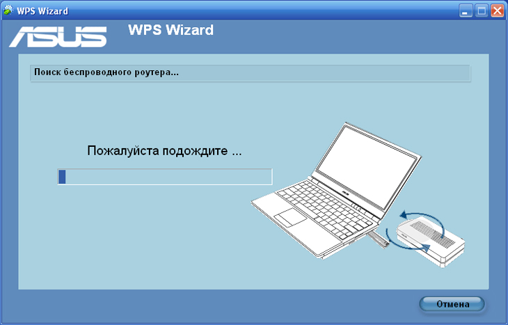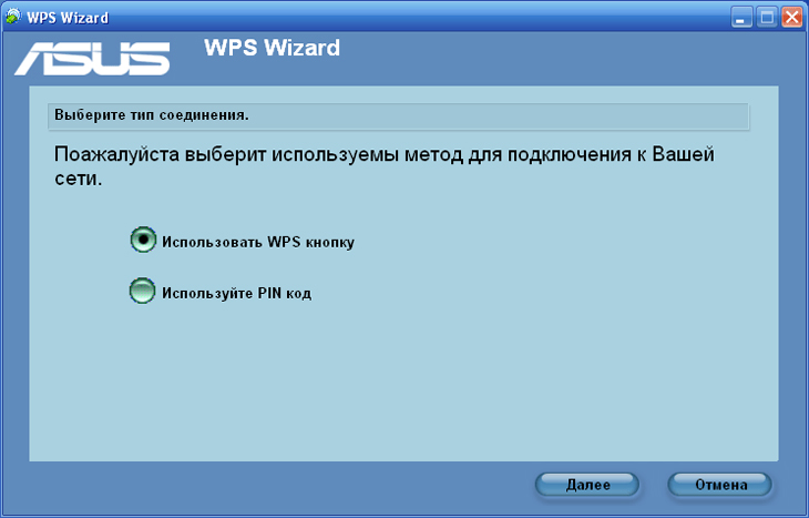 Вторая утилита, ASUS WPS Wizard, представляет собой мастер быстрой настройки защищённого соединения, позволяющий не ориентирующемуся в сетевых вопросах новичку, не сильно напрягаясь, развернуть беспроводную сеть у себя дома или подключиться к беспроводной точке доступа. Разработчики предусмотрели два режима настройки: с использованием кнопки WPS на роутере или с вводом PIN-кода. В первом случае сетевой адаптер автоматически найдёт роутер, а дальнейшая настройка параметров пройдёт в автоматическим режиме и не потребует от пользователя никаких знаний. Во втором случае пользователю нужно выбрать роутер из списка найденных устройств, ввести соответствующий PIN-код и назначить имя сети.
