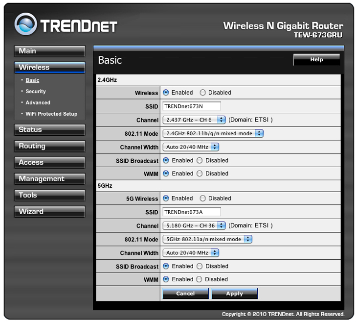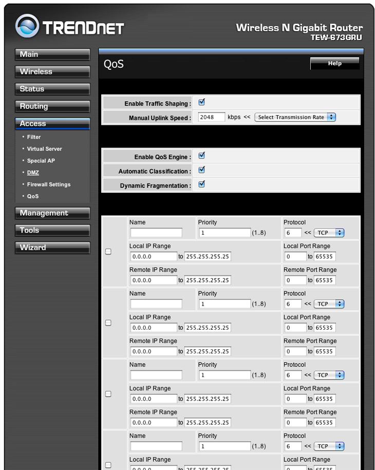 Бывалые пользователи и администраторы локальных сетей без проблем освоят веб-интерфейс TRENDnet TEW-673GRU. Его содержимое организовано логичным образом, страницы открываются быстро, сохранение настроек также не занимает много времени.