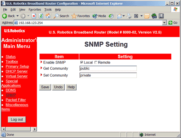 Настройки SNMP. Благодаря этой функции можно просматривать статистику вашей сети. Можно позволить доступ к нему либо из локальной сети, либо из внешней, либо из обеих сразу, либо выключить его вообще.