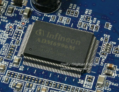 Роль коммутатора выполняет микросхема Infineon ADM6996M производства компании Infineon Technologies. Кроме того, устройство имеет модуль SDRAM-памяти Winbond W9812G6GH-75 объемом 16 Мб американской компании Winbond Electronics Corporation.