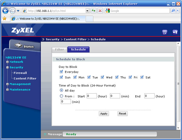 Фильтрация трафика осуществляется как по типу содержимого, так и по заданному пользователем набору символов. Как и межсетевой экран, фильтр может работать по заданному расписанию.