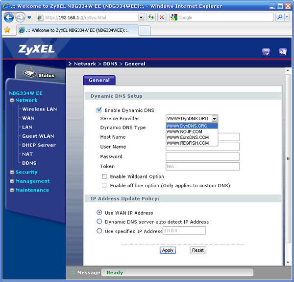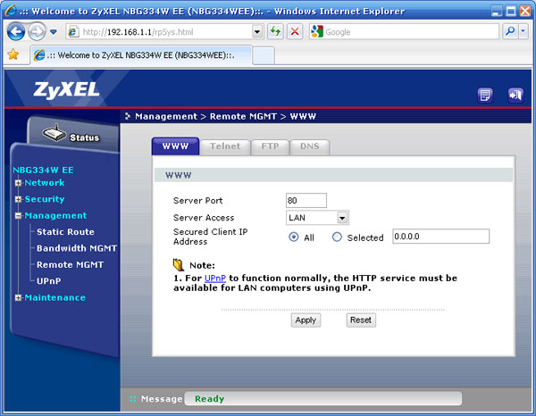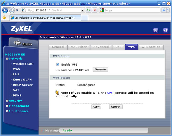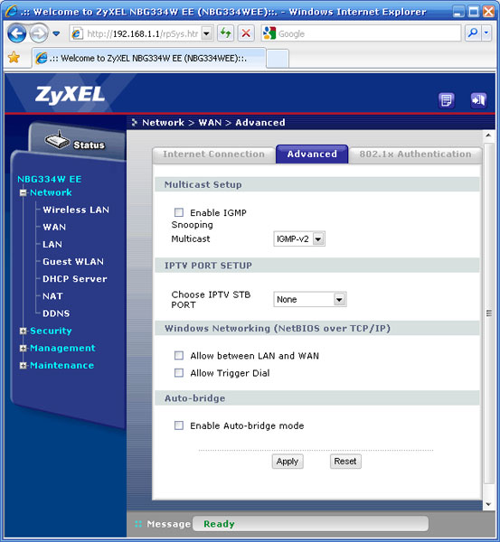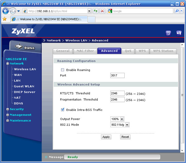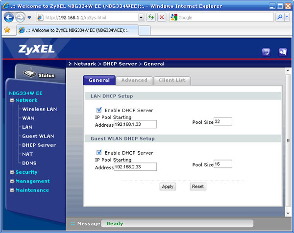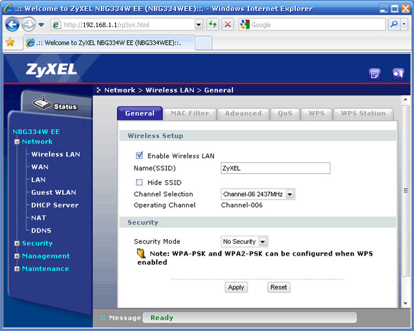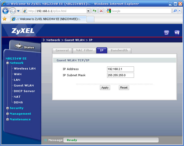 Гостевая сеть отличается тем, что по умолчанию гость будет подключен через ZyXEL NBG334W EE только к интернету. К локальным ресурсам гостя придется подключать вручную. Кроме того, при данном типе подключения предусмотрены другие механизмы безопасности: WEP, WPA и WPA2.