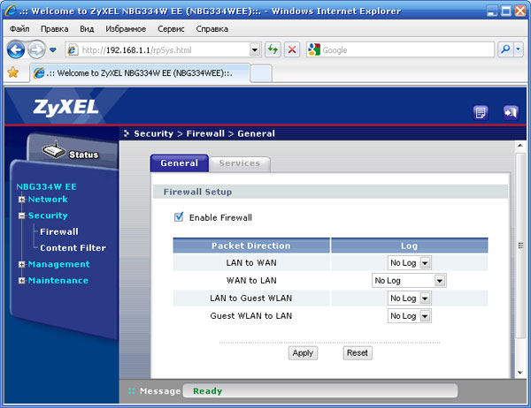 | Направление передачи | ZyXEL NBG334W EE | ||