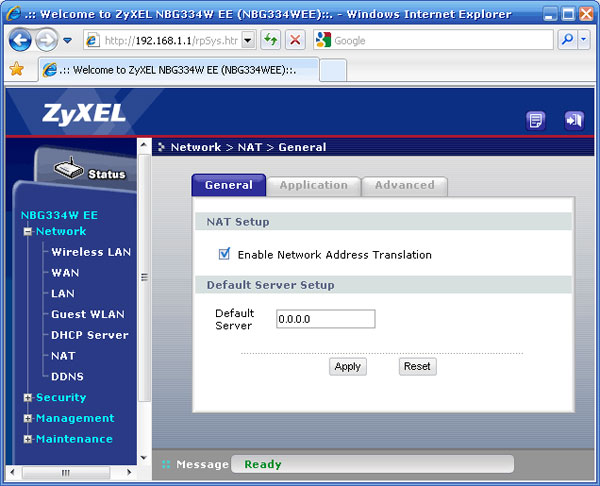 Настройки всех сетевых интерфейсов собраны в разделе Network. Новинка может работать как в режиме шлюза, так и в режиме маршрутизатора. В последнем случае функция NAT (Network Address Translation) не задействована - ее следует отключить вручную на соответствующей странице настроек. Правила перенаправления портов задаются на отдельной странице. Всего можно создать до двенадцати правил.