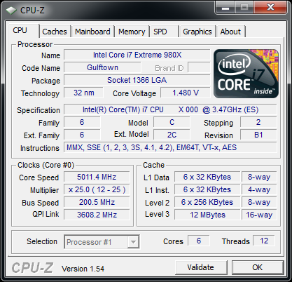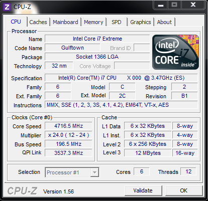 Процессор Core i7-990x был разогнан до 4,7 ГГц, напряжение на ядрах составляло 1,4 В.