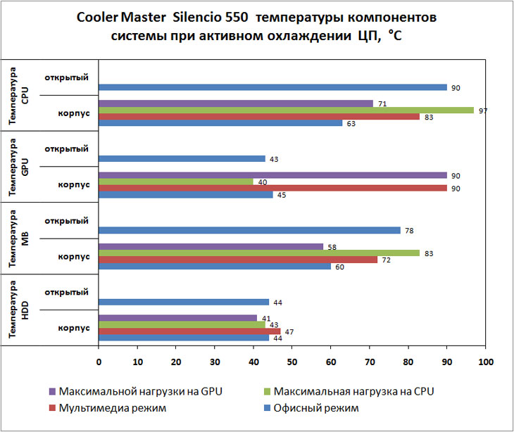 Корпус тестировался в двух режимах охлаждения: