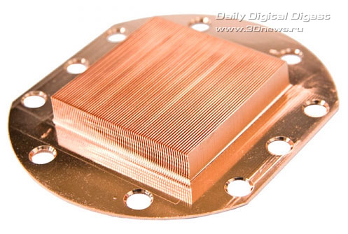 Медный водоблок имеет многоканальную структуру, состоящую из тонких рёбер высотой 6-7 мм: