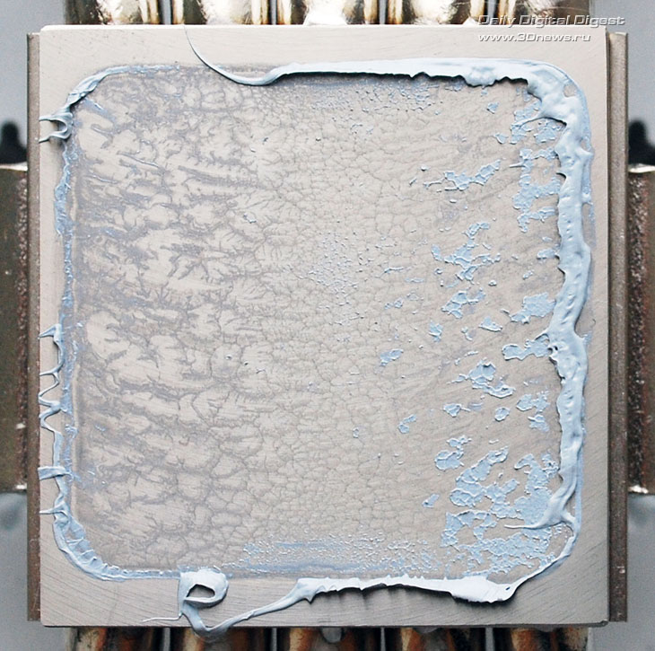 Поверхность основания едва заметно выпуклая по продольной оси, но на отпечатке процессора конструктива Socket AM3+ это практически не сказалось: