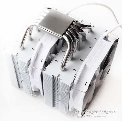 Благодаря этому, сопротивление воздушному потоку от вентиляторов снижается и обеспечивается сохранение высокой эффективности кулера на низких скоростях вращения вентиляторов.
