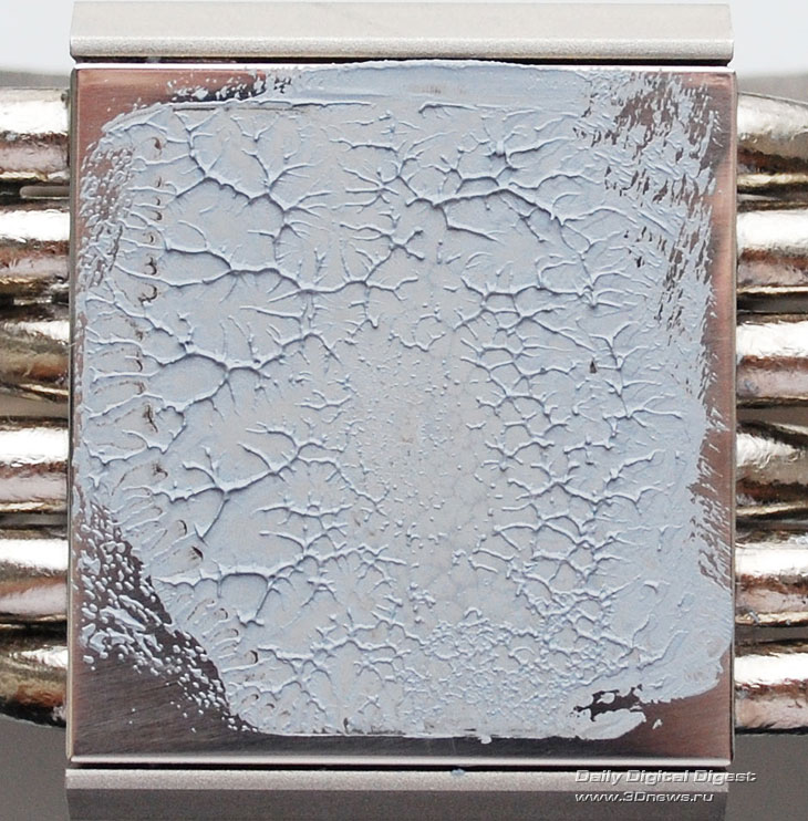 Кроме этого, после пайки сопряжений всех компонентов на них напыляется тончайший слой композитного материала, способствующего более эффективному теплообмену между всеми компонентами радиатора (основанием, тепловыми трубками и пластинами). Интересный момент, ранее нам не встречавшийся.