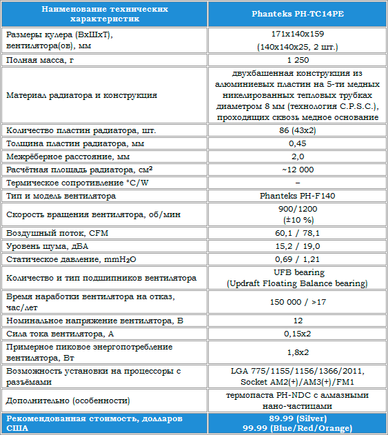 Система охлаждения разработана в Голландии, однако выпускается в Тайване. Рекомендованная стоимость серебристой версии Phanteks PH-TC14PЕ составляет 89,99 доллара США, а цена голубой, оранжевой и красной на 10 долларов США выше. Столь высокая стоимость новинки частично компенсируется пятилетней гарантией.