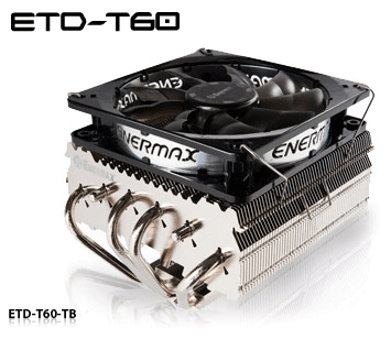 Благодаря этому снижено сопротивление воздушному потоку, в результате чего должна быть обеспечена высокая эффективность Enermax ETD-T60-TB на низких скоростях вентилятора. Радиатор состоит из 55 алюминиевых пластин толщиной 0,4 мм, расставленных с межрёберным расстоянием 1,8 мм. Заявленное в спецификациях тепловое сопротивление кулера равно 0,12 °С/W.
