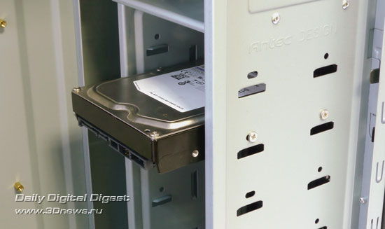 Устанавливать таким образом жесткий диск мы бы не рекомендовали - уж больно неэстетично выглядит торчащий на несколько сантиметров вперед накопитель, но пользоваться этой возможностью именно для оперативного подключения накопителя очень даже удобно.