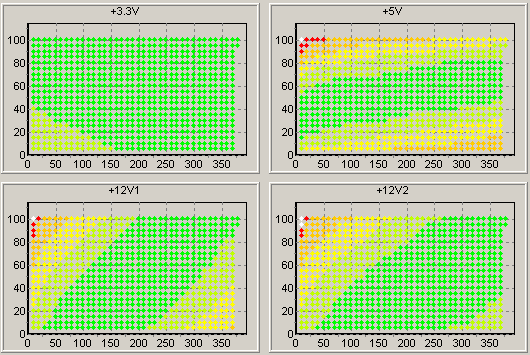Результаты тестирования БП Strider SST-ST50F-ES в автоматическом режиме измерения динамических кросс-нагрузочных характеристик: