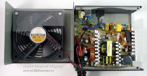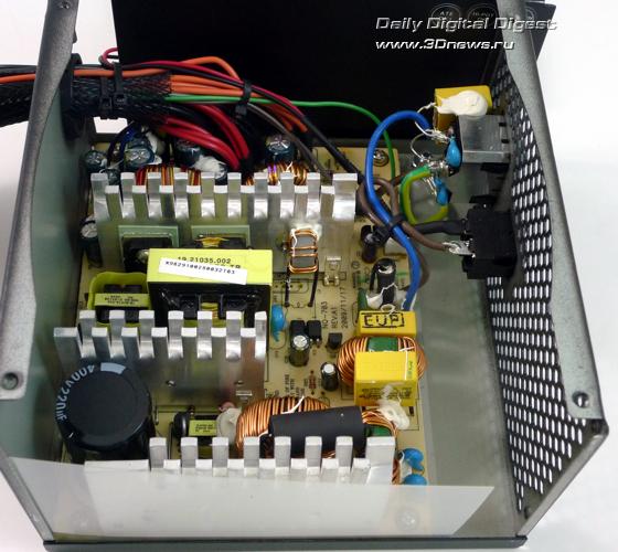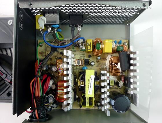 Пожалуй, единственное замечание к этому блоку питания: шумноват. Инструментальных изменений этого параметра мы не проводили, но косвенно, на слух, шум работающего вентилятора становится слышен ближе к максимальной нагрузке.
