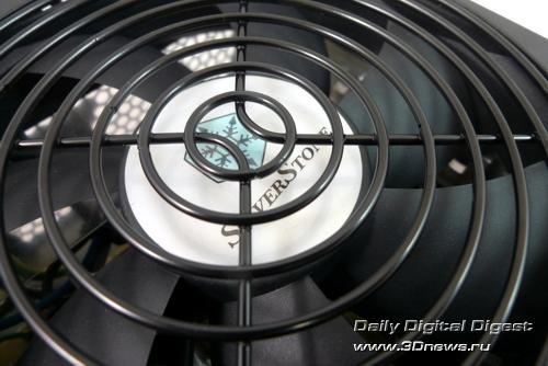 Прежде, чем перейти непосредственно к тестированию корпуса, рассмотрим подробнее систему охлаждения, реализованную в SilverStone Sugo SG01-F. Она состоит из двух вентиляторов диаметром 80 мм. Первый из них установлен на правом боку корпуса и предназначен для охлаждения накопителей. Он втягивает холодный воздух внутрь, прогоняет его через корпус, после чего воздух выходит через вентиляционные отверстия в левом боку.