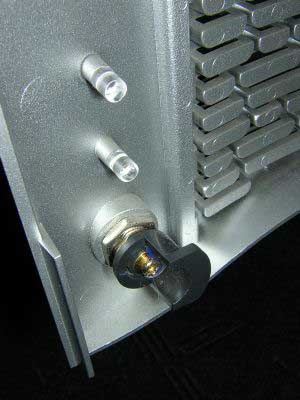 Если вы хотя бы более-менее интересуетесь новыми поступлениями корпусов от различных производителей на современный рынок, то при сравнении, могли заметить что, у AL-03-BK в комплекте поставки отсутствует блок питания, некоторые дополнительные входы (на передней или боковой панели) и вентилятор 90х90 мм. на все той же передней панели. Все это, за исключением, может быть, вентилятора, едва ли можно назвать недостатками корпуса или недоработками производителя, т.к. в большинстве случаев, из дополнительного блока входов используется только лишь USB, а качественный блок питания, допустим от того же Chieftec, заметно повысил бы стоимость корпуса. Так же в строении корпуса отсутствует дверца, прикрывающая внешние отсеки 5,25" и 3,5", но это - прерогатива более дорогих и высоких корпусов от Chieftec. Внешний видПри первом взгляде на AL-03-BK у каждого человека могут родиться разнообразные ассоциации внешнего вида с некоторыми образами, сопутствующими нас в повседневной жизни. При этом, даже несмотря на то, что AL-03-BK, в чем-то, может и проигрывает более "маститым" моделям Chieftec по внешнему виду, впечатления остаются настолько яркими, что пользователь может в любой момент воспроизвести его у себя в голове. Именно это говорит о корпусе, как о настоящем, выделяющемся из серой массы себе подобных, продукте. Переходим к детальному осмотру. Корпус имеет габариты: 458 мм x 207 мм x 478 мм (длина х ширина х высота), относится к категории "Midi Tower". На передней панели расположились: один отсек 3,5" и три отсека 5,25". Не совсем стандартное положение отсека для флоппи-дисковода связано с тем, что для самого дисковода предусмотрен специальный разъем, позволяющий удобно и быстро извлекать его из корпуса, но об этом позже. Далее следуют также не совсем стандартные отсеки для оптических приводов и совместимых устройств. На месте где мог бы расположиться четвертый отсек на 5,25" в нашем случае расположены кнопка включения, кнопка перезагрузки, светодиоды "power" и "hdd" и дополнительные USB входы, в количестве двух штук и, к сожалению, не прикрытые резиновой заглушкой. Ниже по передней панели находятся вентиляционные отверстия, в самом нижнем из которых, можно увидеть окно, предназначенное для затягивания воздуха во внутреннюю полость корпуса специальным вентилятором 90 х 90 мм., который, в свою очередь, может быть установлен пользователем самостоятельно. Все угловые плоскости корпуса сглажены, что просто не может не радовать глаз современных пользователей, которые уже порядком подустали от прямоугольных форм, приемлемых разве что для офисных персональных компьютеров.  Правая стенка корпуса абсолютно ничем не выделяется - здесь отсутствует даже вентиляционное отверстие, кстати, малопригодное в данном месте. Левая же, имеет данное отверстие, также здесь находится ручка, при нажатии на которую, пользователь с легкостью открывает корпус и получает доступ ко всем комплектующим. А благодаря специальному замку с поворотной ручкой, AL-03-BK лишен закрывающих болтов на задней стенке, которые так часто вызывают раздражение оверклокеров и любителей апгрейдов. Замок имеет довольно сложную, но надежную конструкцию и полностью крепится на верхней крышке, т.е. не вызывает никаких затруднений к доступу к различным частям вашего компьютера. Напомним, что в комплекте поставки идет два специальных ключика, предназн