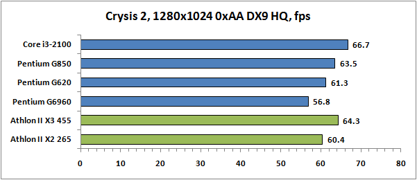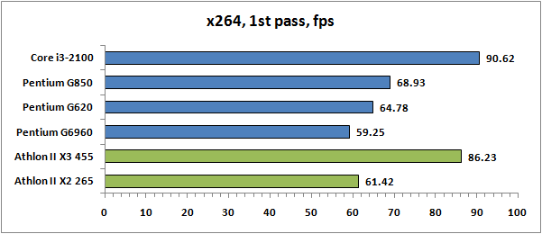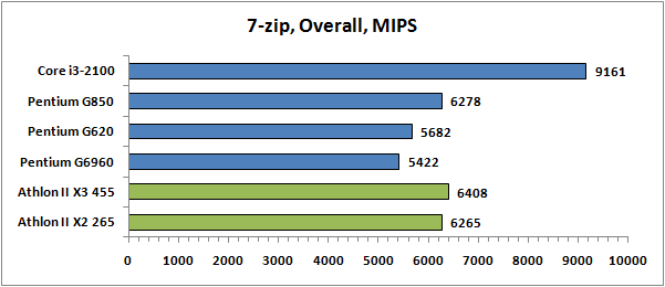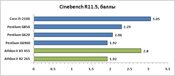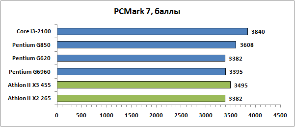 | Core i3-2100 | Pentium G850 | Pentium G620 | Pentium G6960 | Athlon II X2 265 | Athlon II X3 455 | |