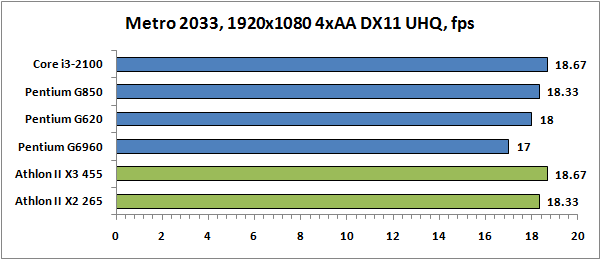 Попутно хочется отметить вот что. Мы уже давно привыкли, что игровая производительность зависит в первую очередь от мощности графической карты. Процессор же влияет на количество кадров в секунду очень слабо, особенно при использовании больших разрешений и высоких настроек качества. Однако в случае со слабыми CPU, такими как рассматриваемые сегодня Pentium, этот посыл оказывается неверным. Даже на максимальных настройках зависимость производительности от процессора присутствует, а иногда она даже существенна. Так что при формировании недорогой игровой системы нужно уделять пристальное внимание сбалансированности возможностей CPU и GPU.