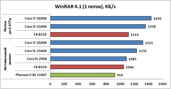 | Winrar 4,1 Bench, Кбайт/с | 4282 | 4313 | 0,7 % |