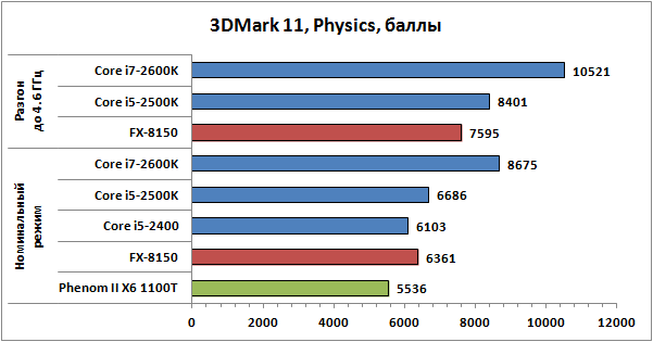 | 3DMark 11, Physics, баллы | 6330 | 6392 | 1,0 % |