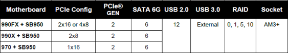 Согласно официальным данным, материнские платы для процессоров AMD FX должны базироваться на чипсетах девятисотой серии и комплектоваться специальным разъёмом Socket AM3+. Такие платы не только поддерживают новинки, но и обратно совместимы с процессорами Phenom II и Athlon II. Однако новые чипсеты, как и новый процессорный разъём, предлагают минимальные отличия от предшествующих наборов системной логики восьмисотой серии, поэтому ожидать от них каких-то принципиально новых возможностей не следует.