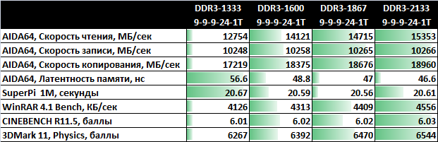 | Память (для DDR3-1600 CL9) | 228 | 145 | 153 |