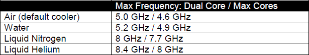 Представители AMD поделились с нами следующей табличкой, описывающей их представление о частотном потенциале новинок: