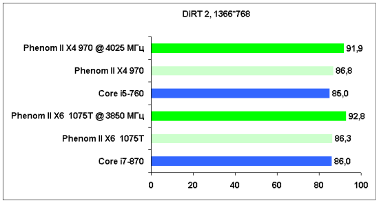 DiRT2 отдает предпочтение моделям от AMD, хотя разница здесь минимальна.