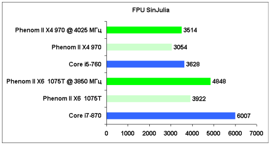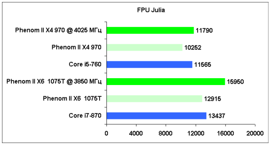 В FPU Julia процессоры Intel возвращают себе лидерство, хотя отрыв уже очень невелик.