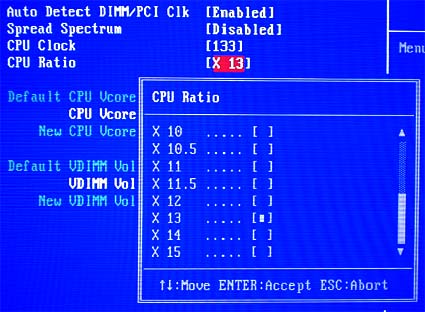 Время, которое потребуется на снятие множителя - около 30 минут. После этого вы сможете разогнать процессор, изменяя его множитель. Мы не учитываем разгон с помощью увеличения частоты FSB, потому что это приводит к росту частот шин AGP и PCI, что не лучшим образом сказывается на стабильности.