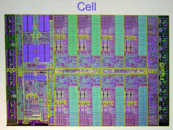 Каждый SPE в Cell состоит из 21 млн. транзисторов, из которых 14 млн. отводится на локальную память, а 7 млн. - на логику. При этом его размеры составляют 5,81 мм * 2,8 мм (0,09 мкм тех. процесс с применением SOI).