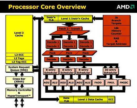 У AMD же подход полностью противоположный. Компания считает, что сейчас не время и не место для революций, а плавность эволюционного развития x86 со времен 8086 до Pentium 4 и Athlon XP, не должна прерываться. Исходя из этой идеи и формулировалась сама идеология создания процессора AMD следующего поколения - K8. Необходимость 64-битности уже тогда прослеживалась абсолютно явно, да и Intel уже во всеуслышание заявил о разработке IA-64, так что вопрос - быть 64-бит или не быть, на повестке дня для компании просто не стоял.
