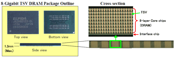 С многослойными (MLP) чипами флэш-памяти технология TSV имеет лишь отдалённое сходство, однако понять суть формирования чипа в самых общих чертах такая аналогия помогает. Идея, кстати, отнюдь не нова, так как ещё в 2007 году компания Samsung Electronics объявила о выпуске первых многоярусных 512-Мбит чипов DRAM по технологии TSV.