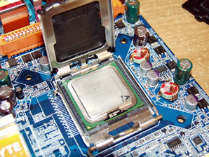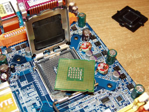 Как известно, на новых процессорах LGA775 ножки отсутствуют - вместо них контактные площадки. А ножки установлены непосредственно на процессорном сокете.