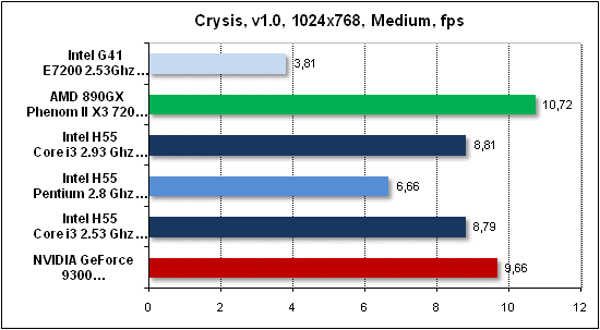| Процессоры | Intel Core 2 Duo E7200 на ядре Wolfdale Intel Pentium G6950 на ядре Clarkdale Intel Core i3-530 на ядре Clarkdale AMD Phenom II X3 720 |
