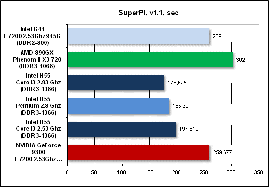 Результат SuperPI измерялся в секундах, т.е. меньше - это лучше.