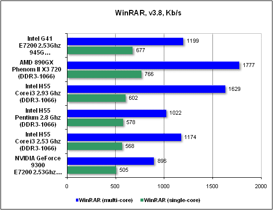 Сжатие данных (WinRAR) измерялось в Кб/с., т.е. больше - это лучше.