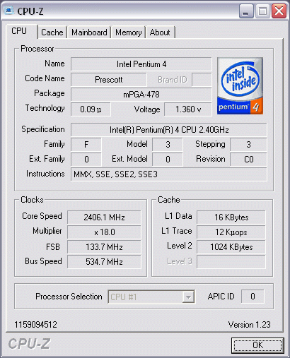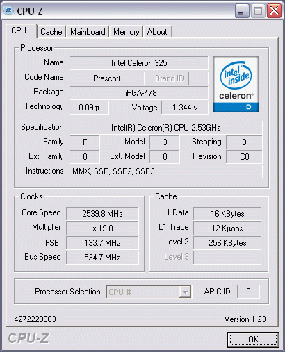 Как вы видите и процессор Celeron-D и процессор Pentium4 2.4A имеют один и тот же степпинг ядра Prescott - С0.