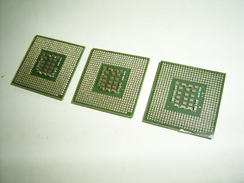 А вот три процессора на ядре Prescott: Celeron-D, Pentium4 2.4A и Pentium4 3.2C (800QPB Мгерц). Попробуйте угадать какой из них - какой.
