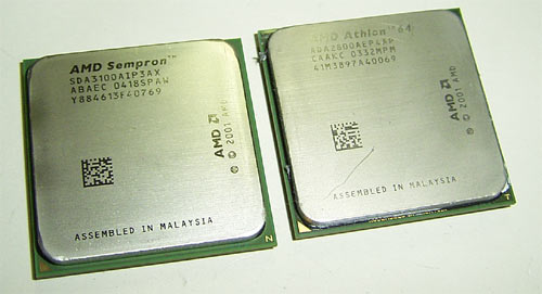 Слева - Sempron3100+, справа Athlon64 2800+ (визуально - совершенно одинаковые процессоры).